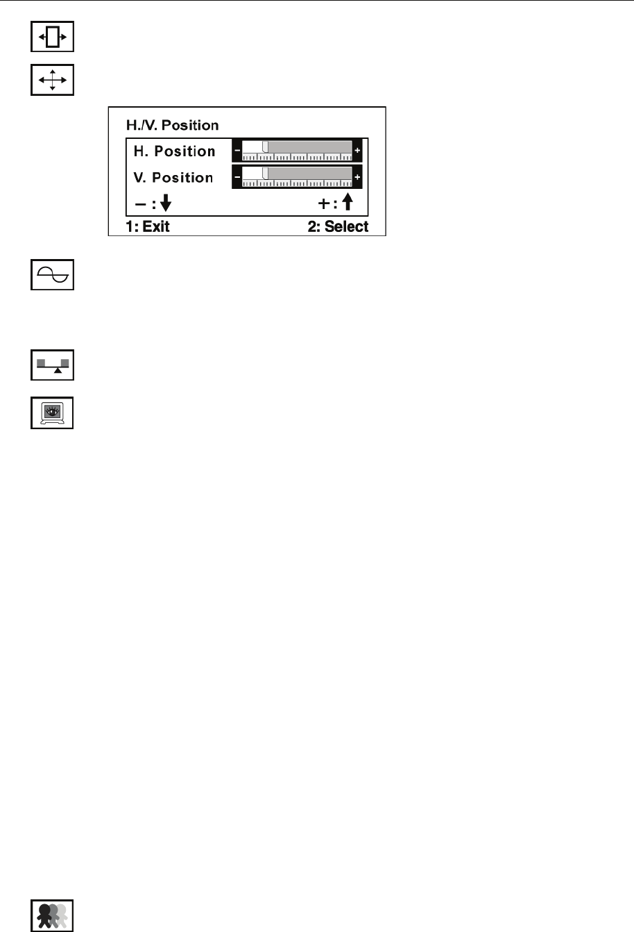 H./V. Position (Horizontal/Vertical Position) moves the screen image left or