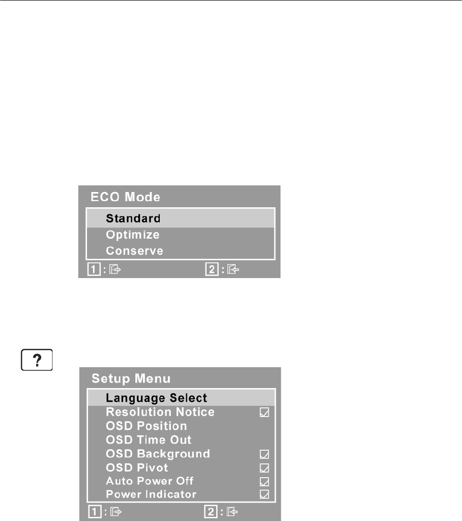 ECO Mode provides the lower power consumption by reducing the brightness.