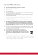 Important Safety Instructions 1. Read these instructions completely before using the equipment. 2. Keep these instructions in a safe place. 3. Heed all warnings. 4. Follow all instructions. 5. Do not use this equipment near water. Warning: To reduce the risk of fire or electric shock, do not expose this apparatus to rain or moisture. 6. Clean with a soft, dry cloth. If further cleaning is required, see “Cleaning the Display” in this guide for further instructions. 7.
