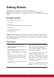Getting Started Congratulations on your purchase of a ViewSonic® LCD display. Important! Save the original box and all packing material for future shipping needs. NOTE: The word “Windows” in this user guide refers to Microsoft Windows operating system.