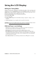Cleaning the LCD Display • MAKE SURE THE LCD DISPLAY IS TURNED OFF. • NEVER SPRAY OR POUR ANY LIQUID DIRECTLY ONTO THE SCREEN OR CASE. To clean the screen: 1. Wipe the screen with a clean, soft, lint-free cloth. This removes dust and other particles. 2. If the screen still not clean, apply a small amount of non-ammonia, non-alcohol based glass cleaner onto a clean, soft, lint-free cloth, and wipe the screen. To clean the case: 1. Use a soft, dry cloth. 2.