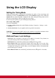 Using the LCD Display Setting the Timing Mode Setting the timing mode is important for maximizing the quality of the screen image and minimizing eye strain. The timing mode consists of the resolution (example 1920 x 1080) and refresh rate (or vertical frequency; example 60 Hz). After setting the timing mode, use the OSD (On-screen Display) controls to adjust the screen image. For the best picture quality set your LCD display timing mode to: VESA 1920 x 1080 @ 60Hz. To set the Timing Mode: 1.