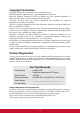 Copyright Information Copyright © ViewSonic® Corporation, 2012. All rights reserved. Macintosh and Power Macintosh are registered trademarks of Apple Inc. Microsoft, Windows, Windows NT, and the Windows logo are registered trademarks of Microsoft Corporation in the United States and other countries. ViewSonic, the three birds logo, OnView, ViewMatch, and ViewMeter are registered trademarks of ViewSonic Corporation. VESA is a registered trademark of the Video Electronics Standards Association.