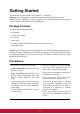 Getting Started Congratulations on your purchase of a ViewSonic® LCD display. Important! Save the original box and all packing material for future shipping needs. NOTE: The word “Windows” in this user guide refers to the following Microsoft operating systems: Windows XP, Windows Vista, and Windows 7.