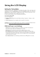 Cleaning the LCD Display • MAKE SURE THE LCD DISPLAY IS TURNED OFF. • NEVER SPRAY OR POUR ANY LIQUID DIRECTLY ONTO THE SCREEN OR CASE. To clean the screen: 1. Wipe the screen with a clean, soft, lint-free cloth. This removes dust and other particles. 2. If the screen still not clean, apply a small amount of non-ammonia, non-alcohol based glass cleaner onto a clean, soft, lint-free cloth, and wipe the screen. To clean the case: 1. Use a soft, dry cloth. 2.