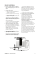Quick Installation 1. Connect AC/DC Adapter to LCD Display, and then plug in power cord to AC outlet. 2. Connect video cable • Make sure both the LCD display and computer are turned OFF • Remove rear panel covers if necessary • Connect the video cable from the LCD display to the computer Macintosh users: Models older than G3 require a Macintosh adapter. Attach the adapter to the computer and plug the video cable into the adapter. To order a ViewSonic® Macintosh adapter, contact ViewSonic Customer Support.