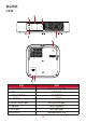連接埠 1 2 3 4 5 6 7 8 連接埠 [1] 電源按鈕 9 說明 開啟投影機或切換成待機模式 [2] LED 指示燈 LED 指示燈 [3] USB-C1 USB-C 連接埠 [4] HDMI2 HDMI 連接埠 ³ [5] DC IN 電源輸出插孔 [6] MICRO SD [7] USB A(5V/2A 輸出) Micro SD 插槽(SDXC 最高 64 GB - FAT32/NTFS) USB 3.0 Type A 連接埠(USB 讀取器 - FAT32/ NTFS) [8] 音訊輸出(3.5 mm 插孔) 3.5 mm 插孔音訊輸出插座 [9] IR 感應器 IR 感應器 ¹ 請使用隨附的 USB-C 線,並確定 USB-C 裝置可支援視訊傳輸。如需詳細的充電資訊,請參閱第 18 頁。 ² 支援 HDCP 2.0/HDMI 2.