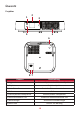 Übersicht Projektor 2 1 3 4 5 6 8 7 Element [1] Augenschutzsensor Beschreibung Erkennt Objekte in der Nähe des Objektivs [2] Objektiv Projektorobjektiv [3] Auto-Fokus-Kamera Passt den Fokus automatisch an [4] IR-Sensor IR-Sensor [5] harman/kardon-Lautsprecher harman/kardon-Lautsprecher [6] Höhenverstellbarer Fuß Stufenloser höhenverstellbarer Fuß [7] WLAN-Dongle Anschluss für WLAN-Dongle [8] Micro-USB USB nur zur Wartung 10