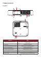 Przegląd produktu Projektor 2 1 3 4 5 6 8 7 Element [1] Czujnik zabezpieczenia oczu Opis Wykrywanie obiektów znajdujących się blisko obiektywu [2] Obiektyw Obiektyw projektora [3] Kamera automatycznej ostrości Automatyczna regulacja ostrości [4] Czujnik podczerwieni Czujnik podczerwieni [5] Głośniki harman/kardon Głośniki harman/kardon [6] Nóżka regulatora Nóżka bezstopniowej regulacji [7] Klucz Wi-Fi Gniazdo klucza Wi-Fi [8] Micro USB USB wyłącznie do celów serwisowych 10