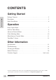 CONTENTS Getting Started Package Contents . . . . . . . . . . . . . . . . . . . . . . . . . . . . . . . . . . . . . . . . . . . . . . 5 E N G L I S H Precautions . . . . . . . . . . . . . . . . . . . . . . . . . . . . . . . . . . . . . . . . . . . . . . . . . . . 5 Quick Installation . . . . . . . . . . . . . . . . . . . . . . . . . . . . . . . . . . . . . . . . . . . . . 6 Operation Front Control Panel . . . . . . . . . . . . . . . . . . . . . . . . . . . . . . . . . . . . . . . . . . . .