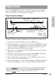 To exit an OnView ® menu or screen, and save changes, press and hold the OSD button. Miscellaneous Controls Menu, continued OSD HPos repositions all OnView (OSD) screens horizontally. CW to move right, C-CW to move left. OSD VPos repositions all OnView (OSD) screens vertically. CW to move up, C-CW to move down. E N G L I S H ViewMeter® Screen VESA 1024 x 768 H: 60.00KHZ+ V: 75 HZ+ 75 Name of current timing (12 factory presets or Ver 1.