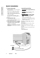 Quick Installation E N G L I S H 1 Connect video cable 4 Install INF and ICM files Make sure both the monitor and computer are powered OFF. Connect the video cable to the computer. Macintosh users: Models older than G3 require a Macintosh adapter. Attach the adapter to the computer and plug the video cable into the adapter. To order a Macintosh adapter, contact ViewSonic®. See “Customer Support” on page 12. 2 Connect power cord Connect the power cord from the monitor to a properly grounded AC outlet.