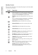To adjust the screen image: 1 To display the Main Menu (parts 1 and 2 shown below), press button [1]. 2 To select a control you want to adjust, press the arrow buttons on the front control panel of your monitor (▼▲) and scroll through the choices. When the control you want to adjust is highlighted, press button [2]. E N G L I S H NOTE: Some controls on the Main Menu are listed in pairs, such as Contrast/Brightness. Press button [2] to toggle between control pairs after displaying a control screen.