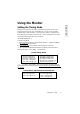 Cleaning the Monitor • MAKE SURE THE MONITOR IS TURNED OFF. • NEVER SPRAY OR POUR ANY LIQUID DIRECTLY ONTO THE SCREEN OR CASE. To clean the screen: 1 2 Wipe the screen with a clean, soft, lint-free cloth. This removes dust and other particles. If still not clean, apply a small amount of non-ammonia, non-alcohol based glass cleaner onto a clean, soft, lint-free cloth, and wipe the screen. To clean the case: 1 2 Use a soft, dry cloth.