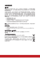 16. 17. 18. 請勿踩在投影機上,或在上面放置任何物品。這樣除了可能導致投影機損壞 外,還可能造成意外及人身受傷。 請勿將液體放在投影機附近或放在投影機上。液體如果濺到投影機內,可能導 致投影機故障。投影機如果不慎弄濕,請立即拔掉電源線,並聯絡當地服務中 心,安排投影機的維修事宜。 投影機可安裝於天花板上,顯示反轉影像。 請使用合格的天花板安裝工具,並確定投影機已安裝牢固。 19. 20. 21.