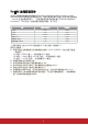 投影機規格 所有規格如有變更,恕不另行通知。 並非所有型號都能在您所屬的區域購得。 PG703X 型號名稱 PG703W 產品規格 解析度 投影比例 顯示系統 燈泡類型 0.55" XGA 0.65" WXGA (1024 x 768) (1280 x 800) 1.96~2.15 1.55~1.7 1-CHIP DMD 240 瓦 (RLC-114) 240 瓦 (RLC-113) 輸入接頭 1 與 RGB 輸入共用 1 1 1 1 (韌體升級) 1 1 RGB 輸入 色差輸入 S-Video 混合輸入 音訊輸入 RCA R&L Mini USB HDMI (1.4a) HDMI/MHL 輸出接頭 1 1 10 瓦 RGB 輸出 USB-A Mini USB (5 V/1.5 A) 音訊輸出 喇叭 控制端子 RS-232 序列控制 LAN 紅外線接收器 9針x1 1 1 (前方) 機械 2.4 公斤 (5.3 磅) 淨重 電氣 電源 耗電量 AC 100–240 V、50–60 Hz 標準:355 瓦 (最大);< 0.