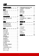 目錄 重要安全說明..........2 透過區域網路遠端控制投影機 ... 31 在待機模式下使用投影機 ....... 38 簡介..................4 調整聲音 ..................... 38 投影機功能..................... 4 關閉投影機 ................... 38 包裝盒內容..................... 4 操作功能表 ................... 39 控制項與功能................... 5 維護 ................ 49 安裝投影機............9 投影機保養 ................... 49 選擇一個合適的位置............. 9 使用除塵濾淨器 (選購配件)... 49 投影尺寸...................... 10 燈泡資訊 ..................... 51 連線.................13 疑難排解 ............ 54 連接電腦或顯示器.....