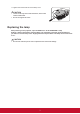 7. Use the handle to slowly pull the lamp out of the projector. CAUTION yy Pulling it too quickly may cause the lamp to break and scatter broken glass in the projector. yy Do not place the lamp in locations where water might splash on it, children can reach it, or near flammable materials. yy Do not insert your hands into the projector after the lamp is removed. If you touch the optical components inside, it could cause color unevenness and distortion of the projected images. 8.