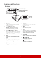 Controls and functions Projector Power indicator light Temperature indicator light Lamp indicator light Focus ring Zoom ring • Power Toggles the projector between standby mode and Power ON. • (Help) Displays the HELP menu with a long press for 3 seconds. • / (Keystone keys) Manually corrects distorted images resulting from an angled projection. • Blank Hides the screen picture.