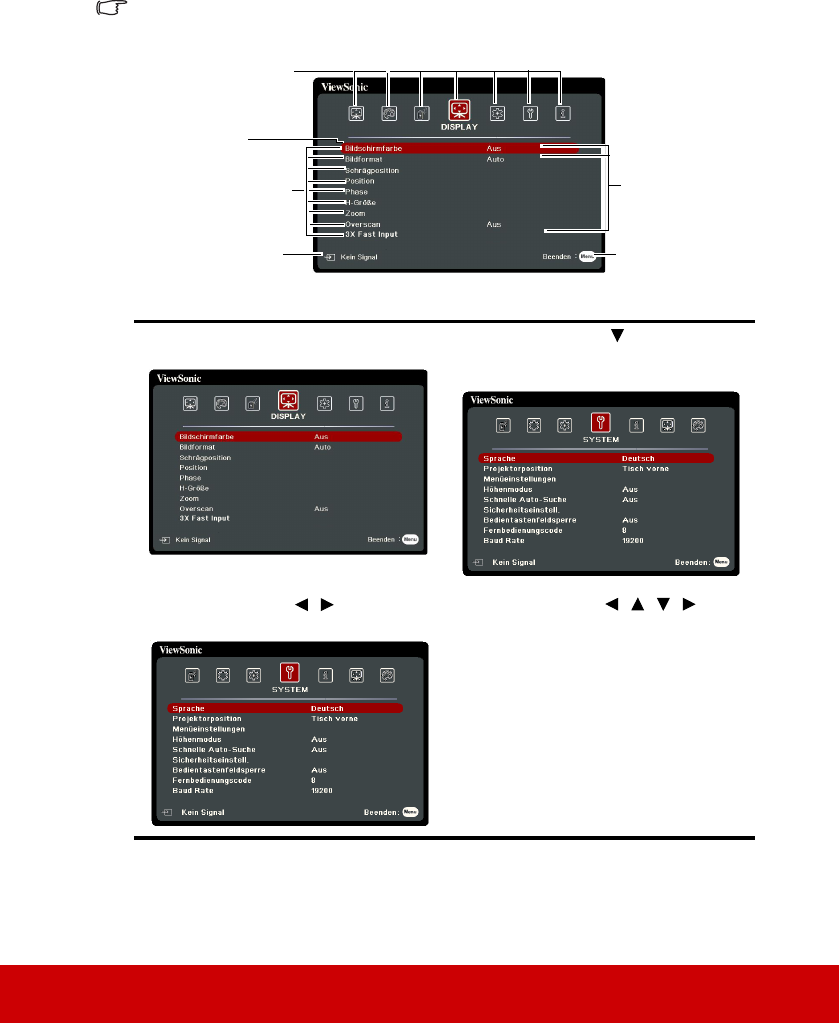 Die folgenden OSD-Bildschirmabbildungen dienen lediglich zur Veranschaulichung und