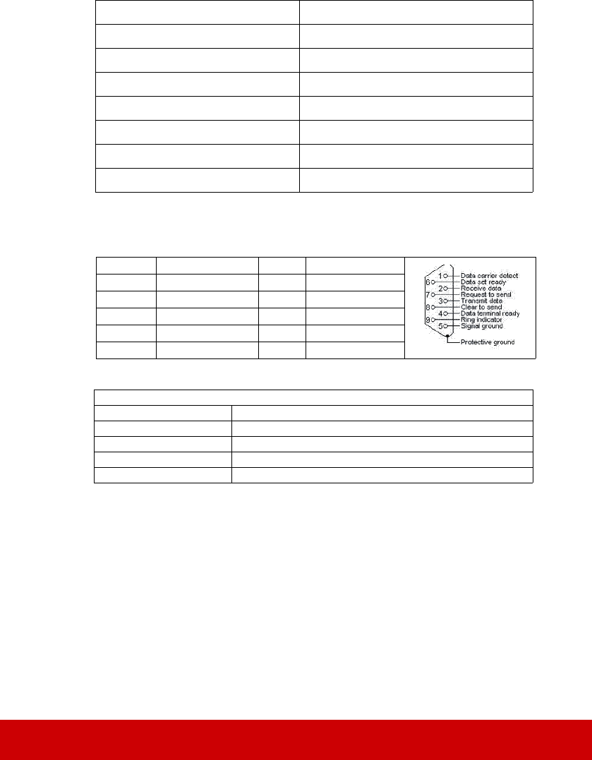 RS232-Befehlstabelle