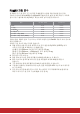 타이밍 도표 아날로그 RGB 신호 해상도 ( 도트 ) 화면비 새로 고침 속도 (Hz) VGA 640 x 480 4:3 60/72/75/85 SVGA 800 x 600 4:3 60/72/75/85 1024 x 768 4:3 60/70/75/85 1152 x 864 4:3 75 1280 x 768 15:9 60 1280 x 800 16:10 60/75/85 1360 x 768 16:9 60 Quad-VGA 1280 x 960 4:3 60/85 SXGA 1280 x 1024 5:4 60 WXGA 1366 x 768 16:9 59.