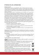 Servicio de atención al cliente Para obtener asistencia técnica o para reparar el equipo, consulte la tabla siguiente o póngase en contacto con el distribuidor. Nota : Tendrá que facilitar el número de serie del producto. País/Región Sitio Web Teléfono Correo electrónico España www.viewsoniceurope. com/es/ www.viewsoniceurope. com/eu/support/call-desk/ service_es@viewsoniceurope.com Latinoamérica (México) www.viewsonic.com/la/ http://www.viewsonic.
