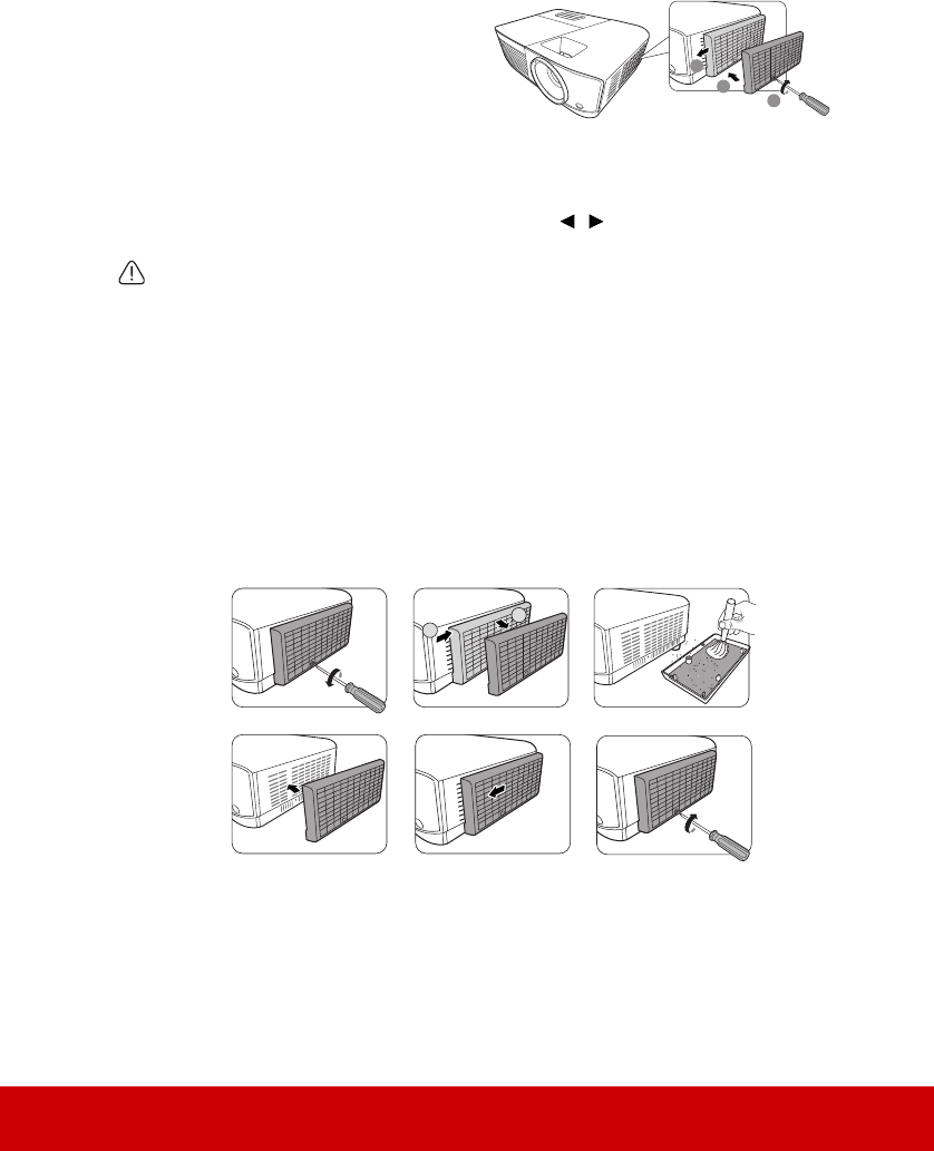 Filtre Modu ayarını sadece projektörü toz filtresi (opsiyonel aksesuar) düzgün bir şekilde