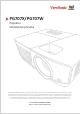 PG707X/PG707W Projektor Uživatelská příručka DŮLEŽITÉ UPOZORNĚNÍ: Přečtěte si prosím tuto uživatelskou příručku, která obsahuje důležité informace pro bezpečnou instalaci a používání vašeho produktu, stejně jako informace o registraci produktu pro budoucí servis. Záruční informace obsažené v této uživatelské příručce popisují omezenou záruku společnosti ViewSonic Corporation, kterou rovněž najdete na naší webové stránce na adrese http://www.viewsonic.