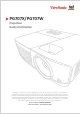 PG707X/PG707W Projecteur Guide d’utilisation IMPORTANT : Veuillez lire ce Guide d’utilisation pour obtenir des informations importantes sur l’installation et l’utilisation de votre produit de manière sécurisée, ainsi que sur l’enregistrement de votre produit pour un service ultérieur. Les informations de garantie contenues dans ce Guide d’utilisation décrivent votre couverture limitée de ViewSonic Corporation, également disponible sur notre site Web à l’adresse http://www.viewsonic.