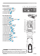 Teilebezeichnungen Teilebezeichnungen HEISS! (1) (2) (3) (4) Projektor (5) (1) Lampenabdeckung (52) Die Lampeneinheit ist im Inneren. (2) Fokusring (16) (7) (6) (10) (3) Zoomring (16) (7) (9) (8) (11) (4) Bedienfeld (5) (Unterseite) (5) Lautsprecher (32) (6) Nivellierknöpfe (x 2) (16) (7) Nivellierfüße (x 2) (16) (8) Objektiv (13, 55) (9) Objektivdeckel (3) (10) Einlassluftöffnungen (11) Filterabdeckung (54) Der Luftfilter und die Lüftungeinlassöffnung sind im Inneren.
