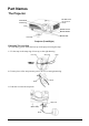 Part Names The Projector Air filter cover (An air filter is inside) Zoom knob Focus ring Lens Remote sensor Elevator button Elevator feet Lens cap Projector (Front/Right) Fastening The Lens Cap To avoid losing, please fasten the lens cap to the projector using the strap. 1 Fix the strap to the strap ring of lens cap, as the right drawing. Strap ring Lens cap Strap Pull 2 Put one piece of the strap into the groove on rivet, as the right drawing. Rivet Strap 3 Push the rivet into the strap hole.