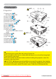 Part names Part names HOT! (1) Projector (1) Lamp cover ( 51) The lamp unit is inside. (2) Focus ring ( 18) (3) Zoom ring ( 18) (4) Control panel ( 5) (5) Elevator buttons (x 2) ( 18) (6) Elevator feet (x 2) ( 18) (7) Remote sensor ( 13) (8) Lens ( 18, 54) (9) Lens cover ( 3) (10) Intake vents (11) Filter cover ( 53) The air filter and intake vent are inside.