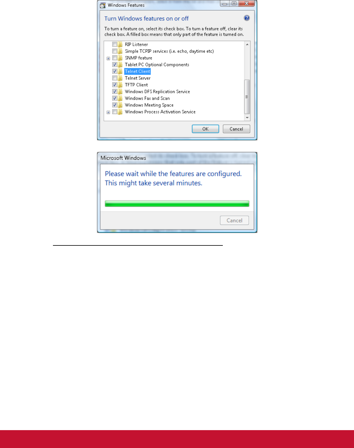 Setzen Sie ein Häkchen bei „Telnet-Client“, klicken Sie dann auf OK.