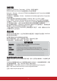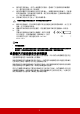 功能 自動開機 說明 訊號 選取 VGA/HDMI,允許投影機在偵測到透過 VGA/ HDMI 訊號線傳送的 VGA/HDMI 訊號時自動開啟。您也 可以選取所有,然後投影機將在收到 VGA 或 HDMI 訊號 時自動開啟。 CEC 如需詳細資訊,請參閱第 31 頁的 「使用 CEC 功能」。 直接開機 選取開啟,允許投影機在電源線通電後自動開啟。 自動關機 如需詳細資訊,請參閱第 53 頁的 「設定自動關機」。 3.