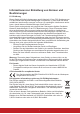 Copyright Hinweise Copyright © ViewSonic® Corporation, 2018. Alle Rechte vorbehalten. Macintosh und Power Macintosh sind registrierte Markenzeichen von Apple Inc. Microsoft, Windows, Windows NT und das Windows Logo sind registrierte Markenzeichen der Microsoft Corporation in den Vereinigten Staaten und anderen Ländern. ViewSonic, das Drei Vögel Logo, OnView, ViewMatch und ViewMeter sind registrierte Markenzeichen der ViewSonic Corporation.