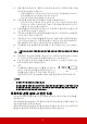 암호 찾기 절차 시작 1. 2. 3. 리모컨에서 Auto Sync 를 3 초 동안 누릅니 다 . 스크린에 코드 번호가 표시됩니다 . 이 번호를 적고 프로젝터를 끄십시오 . 해당 제품 판매업체 또는 현지 서비스 센터에 문의하여 코드 번호를 해독하십시오 . 프로젝 터의 실제 구입자인지 확인하기 위해 제품 구 입 증명서를 요청할 수 있습니다 . 위의 스크린샷에 표시된 "XXX" 는 숫자이며 , 각각의 프로젝 터 모델에 따라 다릅니다 . 암호 변경하기 1. 2. 3. 4. 5. 6. 7. OSD 메뉴를 열고 시스템 > 보안 설정 > 암호 변경 메뉴로 가십시오 . Enter 를 누릅니다 . ' 현재 암호 입력 ' 메시지가 표시됩니다 . 기존 암호를 입력하십시오 . • 암호가 맞으면 ' 새 암호 입력 ' 메시지가 표시됩니다 . • 암호가 틀리면 암호 오류 메시지가 5 초 동안 표시된 후에 다시 입력하도 록 ' 현재 암호 입력 ' 메시지가 표시됩니다 .