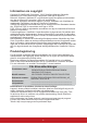 Information om överensstämmelse FCC-uttalande Denna enhet uppfyller kraven enligt del 15 i FFC regler. Användande är underställt följande två villkor: (1) denna enhet får inte förorsaka skadlig störning och, (2) denna enhet ska motstå all mottagen störning inklusive störning som kan leda till oönskad funktion. Denna utrustning har provats och befunnits uppfylla kraven för digitala enheter Klass B i enlighet med del 15 i FCC regler.