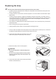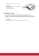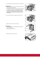 5. Use the handle to slowly pull the lamp out of the projector. CAUTION yy Pulling it too quickly may cause the lamp to break and scatter broken glass in the projector. yy Do not place the lamp in locations where water might splash on it, children can reach it, or near flammable materials. yy Do not insert your hands into the projector after the lamp is removed. If you touch the optical components inside, it could cause color unevenness and distortion of the projected images. 6.