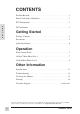 CONTENTS For Your Records . . . . . . . . . . . . . . . . . . . . . . . . . . . . . . . . . . . . . . . . . 1 Power Cord Safety Guidelines . . . . . . . . . . . . . . . . . . . . . . . . . . . . . . 1 FCC Information . . . . . . . . . . . . . . . . . . . . . . . . . . . . . . . . . . . . . . . . . 3 E N G L I S H CE Conformity . . . . . . . . . . . . . . . . . . . . . . . . . . . . . . . . . . . . . . . . . . 3 Getting Started Package Contents . . . . . . . . . . . . . . . . . . . . . . . . . . . . . . .