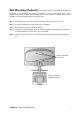 Wall Mounting (Optional) For use only with UL Listed Wall Mount Bracket To obtain a wall-mounting kit, contact ViewSonic® or your local dealer. Refer to the instructions that come with the base mounting kit. To convert your LCD display from a deskmounted to a wall-mounted display, do the following: Step 1. Verify that the power button is turned Off, then disconnect the power cord. Step 2. Lay the LCD display face down on a towel or blanket. Step 3. Remove the four screws attaching the base. Step 4.