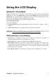 Cleaning the LCD Display • MAKE SURE THE LCD DISPLAY IS TURNED OFF. • NEVER SPRAY OR POUR ANY LIQUID DIRECTLY ONTO THE SCREEN OR CASE. To clean the screen: 1. Wipe the screen with a clean, soft, lint-free cloth. This removes dust and other particles. 2. If the screen still not clean, apply a small amount of non-ammonia, non-alcohol based glass cleaner onto a clean, soft, lint-free cloth, and wipe the screen. To clean the case: 1. Use a soft, dry cloth. 2.