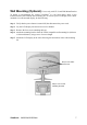 Wall Mounting (Optional) For use only with UL Listed Wall Mount Bracket To obtain a wall-mounting kit, contact ViewSonic® or your local dealer. Refer to the instructions that come with the base mounting kit. To convert your LCD display from a deskmounted to a wall-mounted display, do the following: Step 1. Verify that the power button is turned Off, then disconnect the power cord. Step 2. Lay the LCD display face down on a towel or blanket. Step 3. Remove the four screws attaching the base. Step 4.