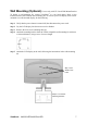 Wall Mounting (Optional) For use only with UL Listed Wall Mount Bracket To obtain a wall-mounting kit, contact ViewSonic® or your local dealer. Refer to the instructions that come with the base mounting kit. To convert your LCD display from a deskmounted to a wall-mounted display, do the following: Step 1. Verify that the power button is turned Off, then disconnect the power cord. Step 2. Lay the LCD display face down on a towel or blanket. Step 3. Remove the four screws attaching the base. Step 4.