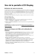 Limpieza del LCD Display • COMPRUEBE QUE EL LCD DISPLAY ESTÁ APAGADO. • NO UTILICE UN PULVERIZADOR NI DERRAME LÍQUIDO DIRECTAMENTE EN NINGUNA PARTE DE LA PANTALLA O EL MONITOR. Para limpiar la pantalla: 1. Frótela con un paño limpio, suave y sin pelusas. Así eliminará el polvo y otras partículas. 2. Si no queda limpio, aplique una pequeña cantidad de limpiacristales sin amoníaco ni alcohol a un paño limpio, suave y sin pelusas, y frote con él la pantalla. Para limpiar el resto del monitor: 1.