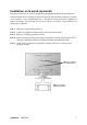Instalación en la pared (opcional) Para uso exclusivo con el Accesorio de Sujeción para Soportes de Pared con aprobación UL. Si desea adquirir un kit de montaje en pared o una base de ajuste de altura, póngase en contacto con ViewSonic® o con su distribuidor local. Consulte las instrucciones que acompañan al equipo de montaje. Para convertir el LCD de un equipo de escritorio en una pantalla para pared, haga lo siguiente: Paso 1. Desconecte la alimentación eléctrica. Paso 2.