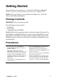 Content Compliance Information.............................................................................. 1 Important Safety Instructions...................................................................... 2 Product Registration ................................................................................... 3 For Your Records ....................................................................................... 3 Getting Started Package Contents ...................................................