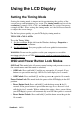 Using the LCD Display Setting the Timing Mode Setting the timing mode is important for maximizing the quality of the screen image and minimizing eye strain. The timing mode consists of the resolution (example 1024 x 768) and refresh rate (or vertical frequency; example 60 Hz). After setting the timing mode, use the OnView ® controls to adjust the screen image. For the best picture quality set your LCD display timing mode to: VESA 1024 x 768 @ 60 Hz.