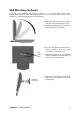 Wall Mounting (Optional) To obtain a wall-mounting kit, contact ViewSonic® or your local dealer. Refer to the instructions that come with the base mounting kit. To convert your LCD display from a deskmounted to a wall-mounted display, do the following: 1. Verify that the Power button is turned Off, then disconnect the power cord. 2. Push the LCD display back and down flat against the base as shown. Four screw holes Mounted on the wall ViewSonic VA902/VA902b 3.