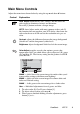 Adjusting the Screen Image Use the buttons on the front control panel to display and adjust the OnView® controls which display on the screen. The OnView controls are explained at the top of the next page and are defined in “Main Menu Controls” on page 12. Main Menu with OnView controls Front Control Panel Displays, saves changes to, and exits the Main Menu. Scroll through menu options and adjust the displayed control. Power light Power On/Off Selects a highlighted control.